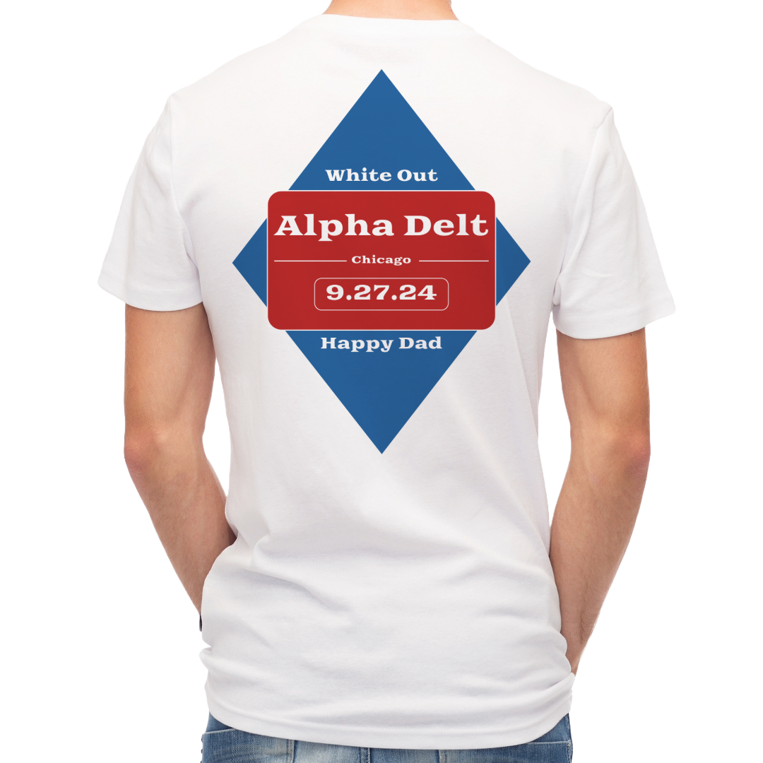 White Out Chicago Alpha Delta Phi5747 South University Ave (Indoor)9.27.2410PM-1AM POSH Happy Dad x Alpha Delt T-shirts available to order on September 23Rd